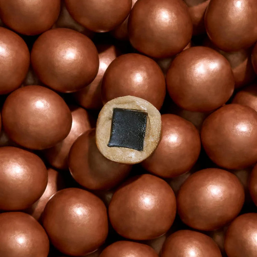 It is hard to imagine a more winning combination than when sweet licorice meets soft dulce chocolate. Now add a grain of crispy flakes of sea salt just to tickle your taste buds. No wonder this became a true classic caramel!