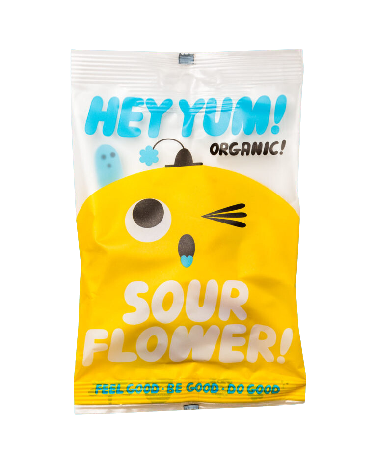 Flowers and gummy rabbits tasting of fruit and sprinkled with sour sugar crystals.