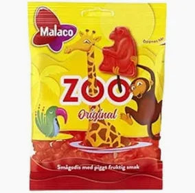 Malaco Zoo is a beloved Swedish candy classic, known for its fruity flavors that have delighted generations. With its iconic packaging featuring the playful monkey, giraffe, and parrot, Malaco Zoo is a staple on the Swedish candy shelf. This bag is perfect for parties or a sweet treat in your candy bowl. Enjoy a taste of nostalgia with this palm oil-free candy, made without artificial colors.